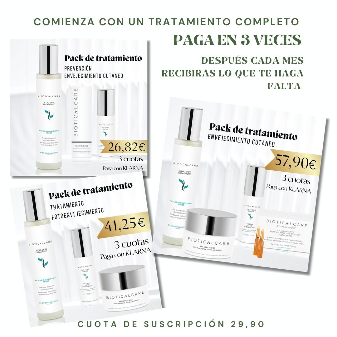 Añade tu tratamiento completo al carrito, paga tu compra en 3 veces seleccionando klarna. Pasados los 3 primeros meses te enviamos la carta de tratamiento para que elijas tu producto. A partir del 4º mes tu cuota pasa a ser de 29,90 + 4,99 (Envío)